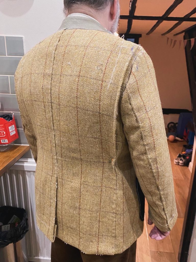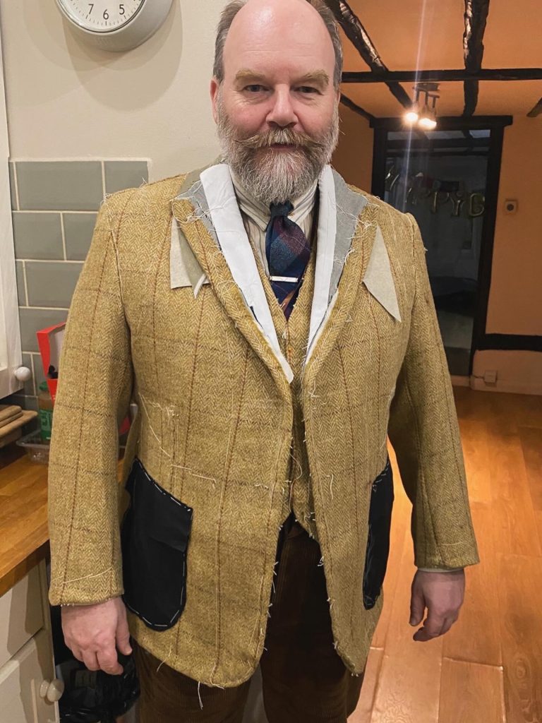 His latest commission is a four piece tweed suit, jacket, waistcoat, trousers and plus 2s all made in a Holland and Sherry Harris Tweed.